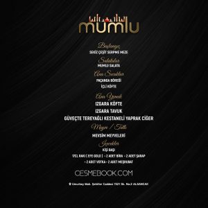 *1750-2000-2500-3000₺ Kişi Başı Fix Menü+Konser Dahil